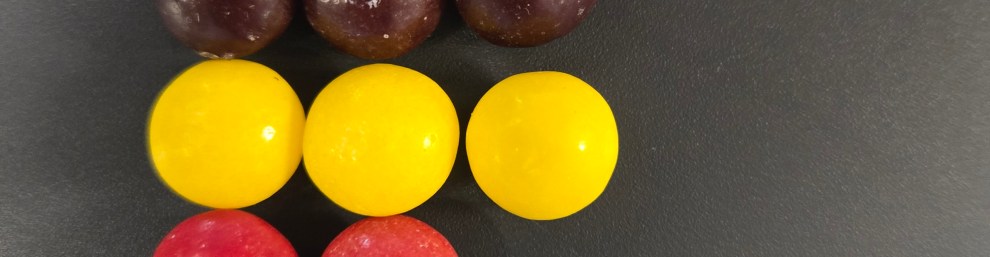 Eating sequence: top to bottom, right to left. One of each color first, then two different colors at a time, etc. Leave one of every color for last and eat them all at once.