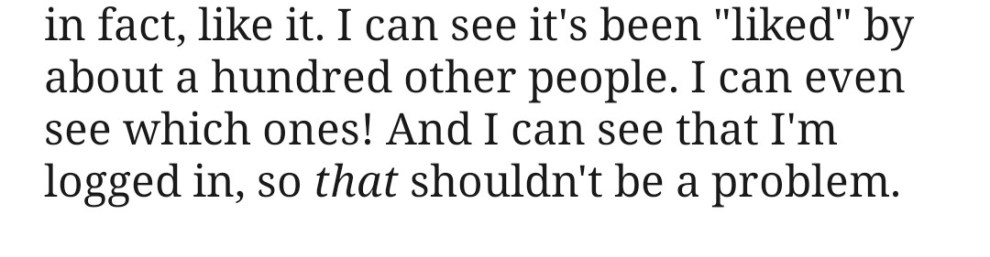 And yet, there is no “like” button to be seen–no star, no heart, no thumbs-up, nothing. I look up. I look down. I look from side to side. It’s not anywhere!