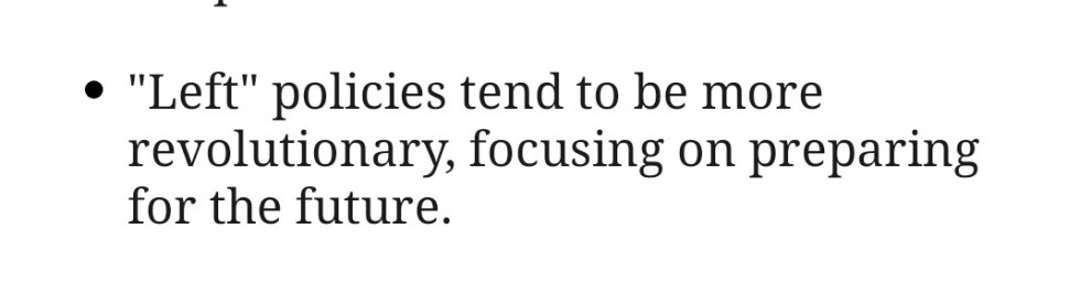 • “Left” policies tend to be more revolutionary, focusing on preparing for the future.